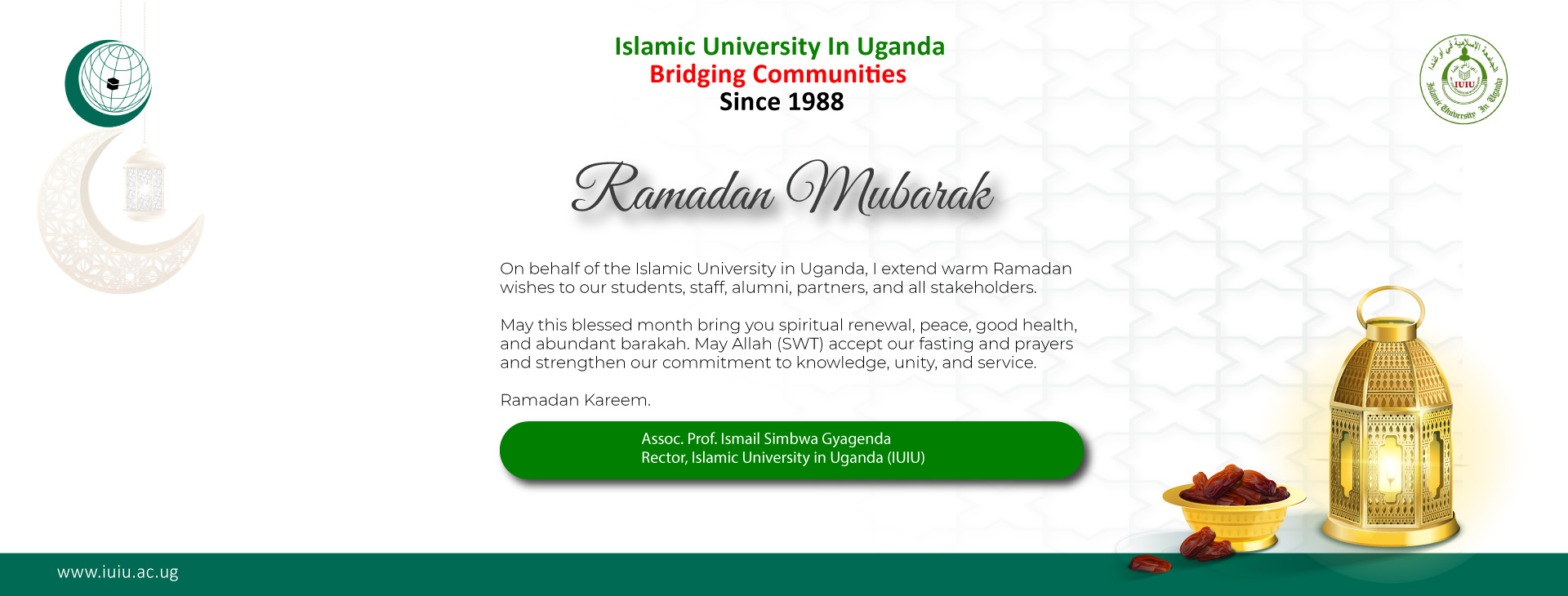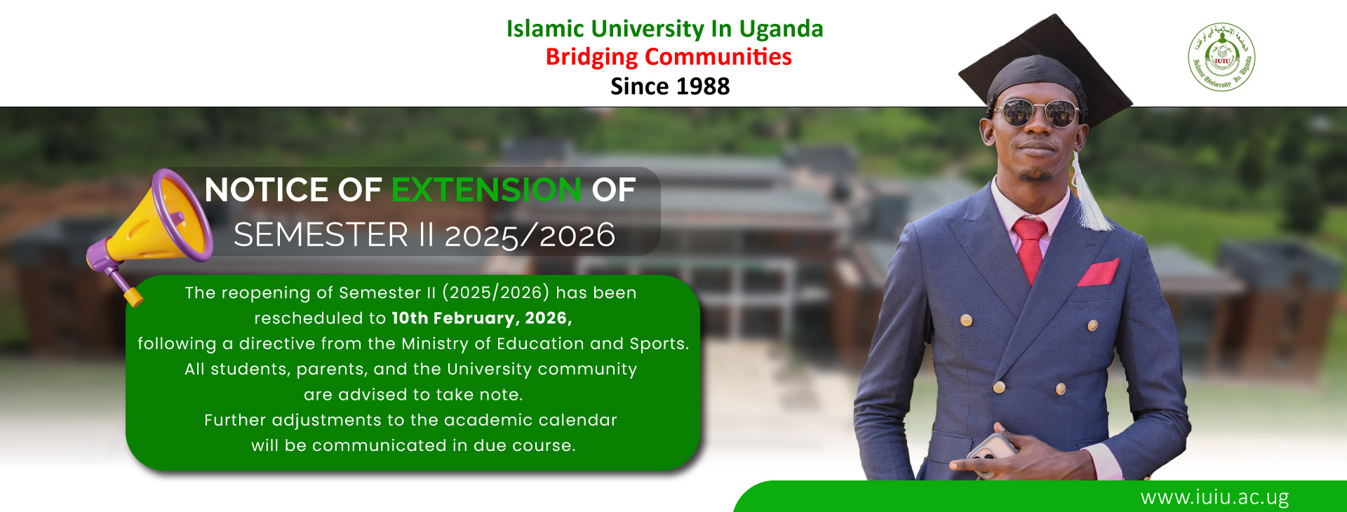 The Islamic University in Uganda was opened in the year 1988 by the Organisation of Islamic Cooperation (OIC) under a bilateral agreement between the Government of Uganda (GOU) and the OIC. In 1990, the Parliament of Uganda enacted a law, The Islamic University in Uganda Act (cap 131, Laws of Uganda), formally establishing the University in Uganda. The University operates under the framework of this Act. The University opened on 10th February 1988 with 80 students and two degree programmes. Currently, we have over 120 accredited programs, 8 Faculties and a student population of over 10,000 coming from 21 different countries. The University has so far graduated over 45,000 students from various disciplines.